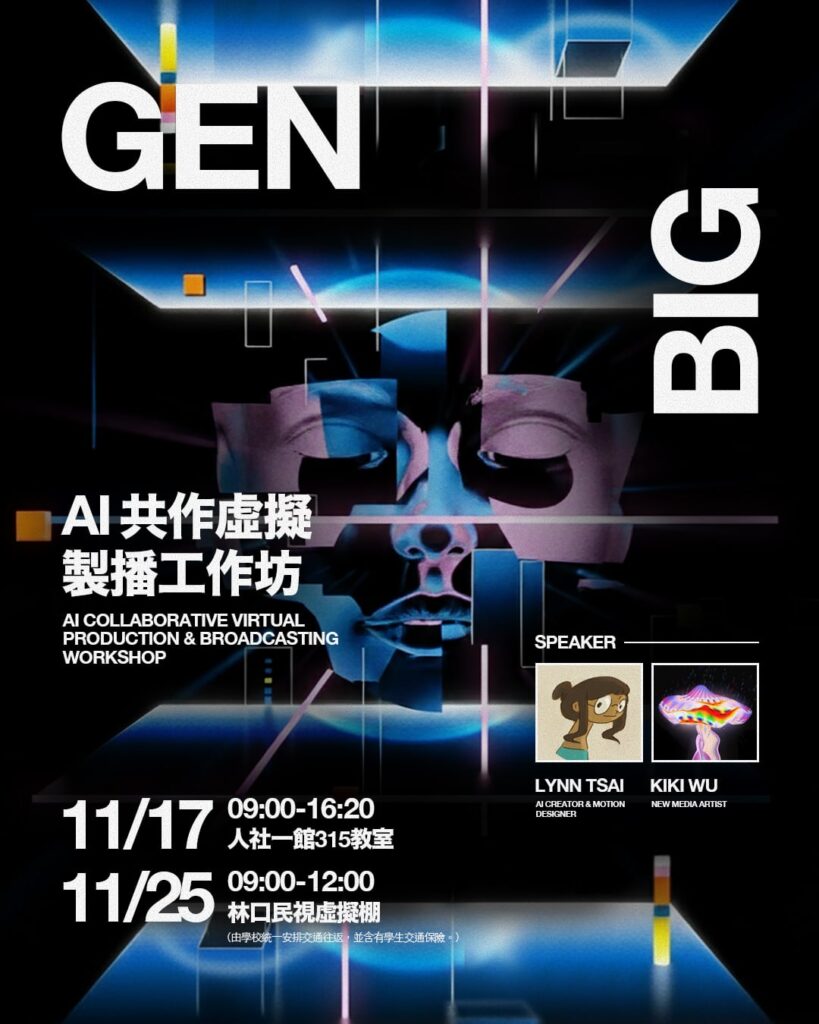 我們邀請當代AI creator & motion designer 專業講師 Lynn Tsai 與 Kiki Wu 分享影視特效與AI實際應用,將AI影像生成導入影視產業虛擬棚,一起“Gen”出更多的想像空間!