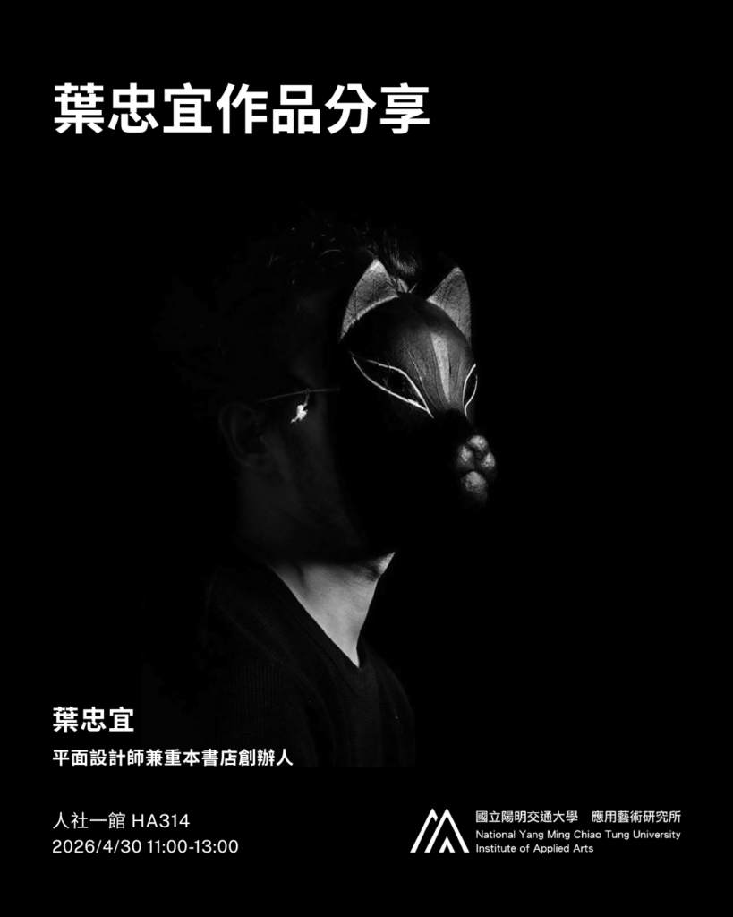 本次講座將由設計師葉忠宜分享其歷年設計作品,涵蓋平面設計、